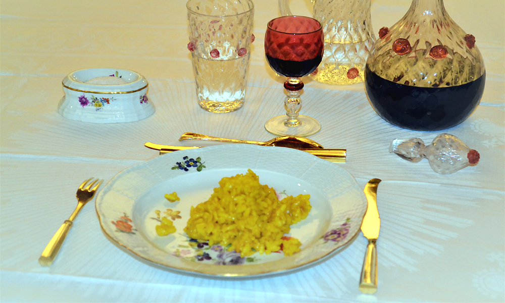 Nella foto un tipico risotto alla milanese “in alta uniforme” per l’occasione di una festa.